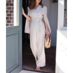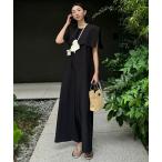 サロペット オーバーオール 梨地ポンチキーネックオールインワン レディース