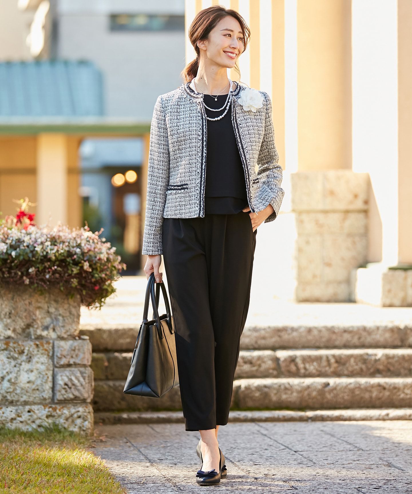 ツイードVネックオールインワン レディース 春 秋 冬 M L 爆買