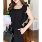 オールインワン カットジョーゼットショルダーフリルオールインワン レディース