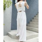 オールインワン リボン付き サロペットワイドパンツ オールインワン・パンツ レディース
