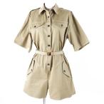 極美品◎PRADA プラダ 2023年製 P293HT コットン トライアングルロゴベルト付 半袖 オールインワン/ジャンプスーツ ベージュ系 36 正規品