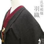 羽織 リサイクル 正絹 袷 黒 こげ茶 乱菊 細縞 カジュアル 中古 仕立て上がり 身丈101 裄丈68.5 Lサイズ ハオリモノ みやがわ sb16668