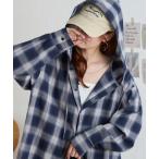 ブラウス シャツ 「anyway.シリーズ」UV チェック エアリー フード シャツ レディース