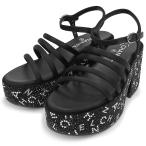(新品・未使用品)シャネル CHANEL グログラン ラインストーン 厚底 サンダル 靴 #38.5 25.5cm レザー ストラス ブラック 黒 シルバー金具 G45364