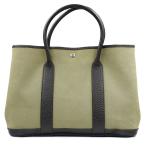 (中古)HERMES エルメス ガーデンパーティ 36 PM トワルオフィシエ ブッフルスキッパー カーキ ニコチン T刻印 ハンドバッグ キャンバス レザー シルバー金具