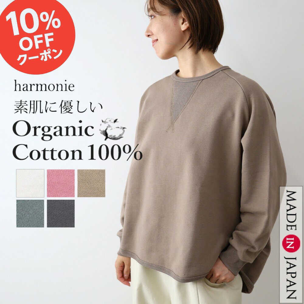 【10%OFFクーポン&ポイント アップ】【日本製/洗える】オーガニックコットン トレーナー 長袖 レディース 綿100 秋冬 裏毛 スウェット ゆったり オーバーサイズ 後ろ長め プルオーバー おしゃれ 体型カバー 大人 カジュアル ブランド harmonie 82590715