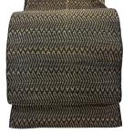 美品 開き名古屋帯 逸品 証紙あり 読谷山花織 草木染 段縞 幾何学模様 灰緑 正絹 中古