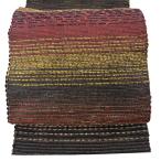 美品 名古屋帯 逸品 証紙あり 紬地 幾何学 首里花織 山吹色 正絹 中古