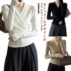 爆買【2点で10%OFF!】ニットセーター レディース 春服 vネック カシュクール シルキータッチニット 長袖 薄手ニット プルオーバー トップス カットソー