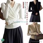 カットソー レディース カシュクール 長袖 Vネック タイト スリム 薄手ニット リブニット トップス春服 春