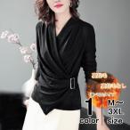 全4色×7サイズ!カシュクール Vネックトップス tシャツ カットソー レディース 長袖カットソー ドレープ トップス 無地 通勤 大きサイズ 春 秋