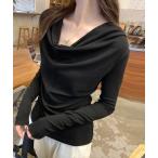 【5%OFFクーポン!10/17(金)9:59まで】Growing Rich ドレープ トップス レディース 長袖 ニットソー 秋冬 起毛ニット ロンT ワンショル オフショル カシュクール風 シャーリング 大人 きれいめ 着痩せ 体型カバー 華奢見え