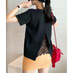 tシャツ バックカシュクールレース切替半袖トップス レディース