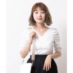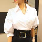 カシュクールシャツブラウス ランタンスリーブ ボリューム袖 ボリュームスリーブ シャツ カットソー ワイシャツ トップス シンプル 無地 大人 オフィス 上品