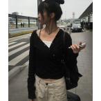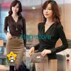 カットソー レディース カシュクール 長袖 Vネック タイト スリム 薄手ニット リブニット トップス