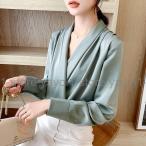 シャツ レディース ブラウス カシュクール サテン ショールカラー 新作 インナー レディースシャツ オフィス 通勤 きれいめ レディースカットソー トップス シ…