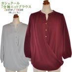 ニット ブラウス 7分袖 レディース カシュクール プルオーバー 無地 カットソー 大きいサイズ 通勤 仕事 お出かけ エンジ グレー ベージュ M L LL 3L