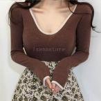 トップス カットソー 長袖深Vネック ヴィンテージ Tシャツ レディース タイト セクシー インナー 無地 薄手 カシュクール春秋ファッション カジュアル フィット