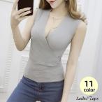ニット カットソー ノースリーブ Vネック カシュクール レディース 女性 婦人服 トップス ニットソー 袖なし スリム おしゃれ シンプル セクシー