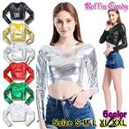 ダンス衣装・ステージ衣装に!メタリック 長袖 カシュクール カットソー/ロングスリーブ トップス ジャズ ヒップホップ レディース ダンサー 大きいサイズ