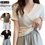 tシャツ Vネック カシュクール風 半袖 タック カットソー レディース