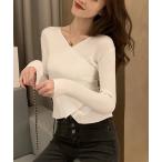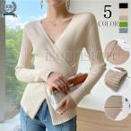 カットソー レイヤード トップス カシュクール 長袖 セーター ニット Vネック ニットソー レディース アシンメトリー リブニット プルオーバー ト