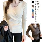 長袖カットソー vネック 冷え防止 カシュクール プルオーバー タイト 秋冬 シャツ 長袖 レディース カットソー 授乳インナー スリム トップス カ