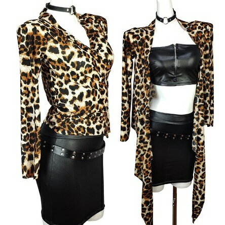 カットソー ストレッチ トップス カシュクール カーディガン 2wayタイプ (レオパード)【フォーマル 二次会 パーティー オフィス 長袖】【メール便送料無料】