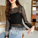 シアートップス レース トップス 長袖 シアー チュール 総レース カットソー レディース 透け感 インナー 薄手 レイヤード 重ね ラウンドネック レーストップス