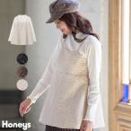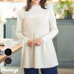 トップス カットソー レイヤード キャミソール 長袖 セット かわいい フリル ハイネック SALE Honeys ハニーズ キャミ付トップス