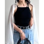 tシャツ アンバランスキャミソールダブルセットリブカットソー レディース
