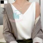 キャミソール タンクトップ カットソー サテン調 レディース 女性 トップス Vネック 薄手 インナー 光沢感 シンプル 無地 おしゃれ きれいめ 上