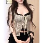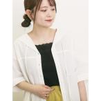 tシャツ 「2点セット」カップ付きレースキャミソール+ドット柄 ギャザーショートシャツカーディガン レディース