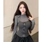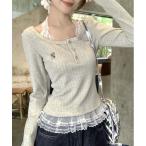 tシャツ 「2点セット」フロントリボンキャミソール+襟リボンレース長袖カットソー レディース