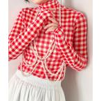 tシャツ ギンガムチェックシアーハイネックトップス レディース