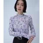 tシャツ 大人シックに映える。花柄フロッキーのシアーハイネックプルオーバー レディース