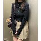 tシャツ ランダム リブ メロウ ハイネック カットソー レディース