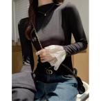 \限界挑戦価格/9%OFFクーポン配布中 シースルー カットソー 2type インナー 透け感 裏起毛 レディース 長袖 薄手 重ね着 トップス おしゃれ タートルネック レイヤード コーデ 無地 柔らかい OL 通勤 オフィス フリルネック 着痩せ Tシャツ