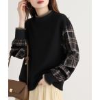 tシャツ ハウンドトゥース切り替え半袖モックネックシャツ レディース