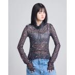 tシャツ LOUDMOUTH/ラウドマウス ゴルフウェア ブランド ロゴ メッシュ ジャガード レース ハイネック ノースリーブ シャツ レディース