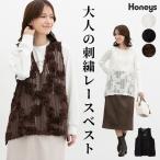 トップス ベスト ジレ カットソー ノースリーブ レース 刺繍レース キーネック スリット カジュアル オールシーズン レディース Honeys ハニーズ レースベスト