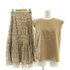 未使用品 マイストラーダ Mystrada エンブロイダリースカート×カットソー セット ノースリーブ フレア 刺繍 34 ベージュ モカブラウン /CX