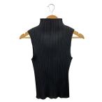 PLEATS PLEASE ISSEY MIYAKE◆ハイネックプリーツノースリーブカットソー/3/ポリエステル/BLK/jk006