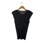 【新品】ISSEY MIYAKE イッセイ ミヤケ トップス タンクトップ カットソー ノースリーブ プリーツ ポリエステル ブラック [サイズ 2]