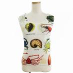 プリーツプリーズ PLEATS PLEASE 美品 カットソー ノースリーブ 総柄 海洋生物 プリント 白 ホワイト 4 レディース