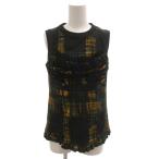 プラダ PRADA カットソー ブラウス ノースリーブ チェック フリル レース 38 紺 ネイビー 黄 イエロー /FF レディース