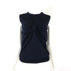 ダブルスタンダードクロージング ダブスタ ニット カットソー セーター ノースリーブ レーヨン リボンドレープ F 紺 ネイビー 美品