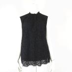 23区 オンワード樫山 レース コンビ カットソー ブラウス プルオーバー フリルネック 花柄 刺繍 スカラップ ノースリーブ L 40 黒