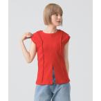 tシャツ リブ フロント スリット ノースリーブ カットソー レディース