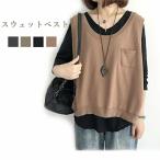 ベスト レディース カットソーベスト スウェットベスト ジレ トップス プルオーバー スウェット ノースリーブ おしゃれ フリーサイズ 大きいサイズ 春 体型カバ